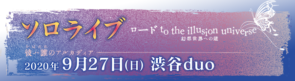 -10th Anniversary – 幽閉サテライトソロライブ2020 ロード to the illusion universe ~幻想世界への道~ [開催中止!名古屋公演] 「開催延期!9月27日(日)東京公演」 »画像をクリックで特設サイトに飛びます« ★★★特記事項★★★ 「ロード to the illusion universe ~幻想世界への道~」名古屋・東京公演 両方にご来場いただいたお客様には、 「来場者限定CD(月に叢雲華に風・華鳥風月のバンドアレンジ)」 をプレゼント‼ ※プレゼントをご希望のお客様には、東京公演の際に、名古屋公演のチケット半券をご提示いただきますので、 公演のチケット半券は大事に保管をお願い致します。